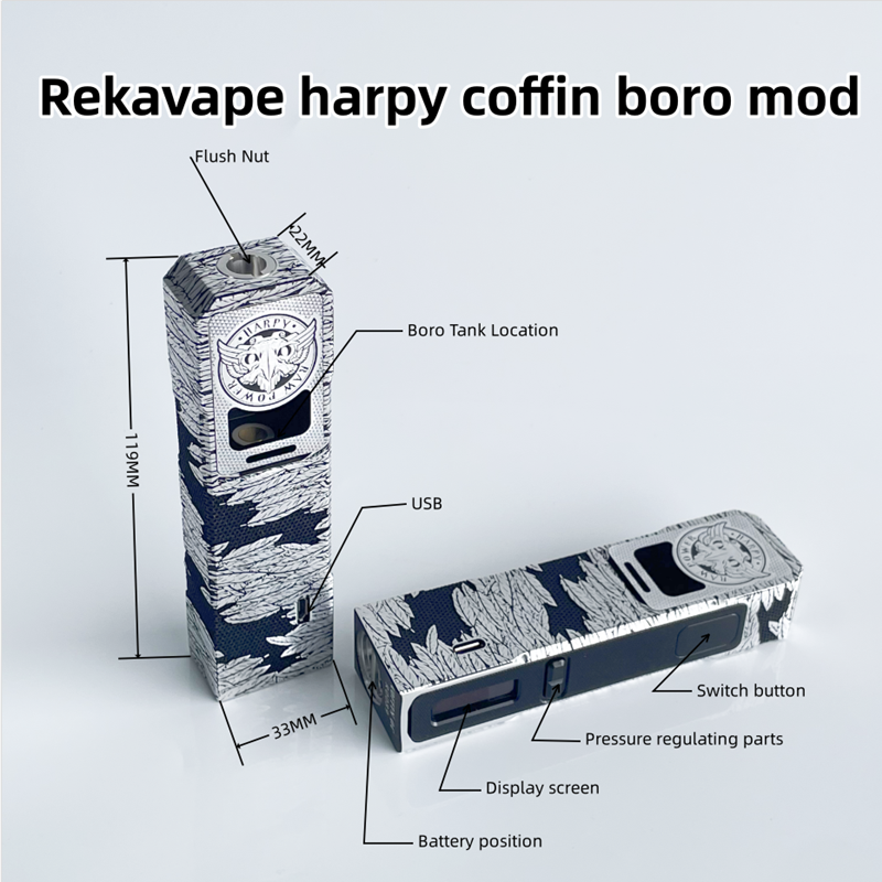 Rekavape Harpy Coffin Style Boro Mod Original DNA60w/60C 2 Kinds Chipset suit 18650 Battery